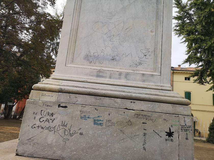 Oltre a quanto già segnalato, la statua del nostro illustre concittadino Evangelista Torricelli viene sovente deturpata da scritte a pennarello.