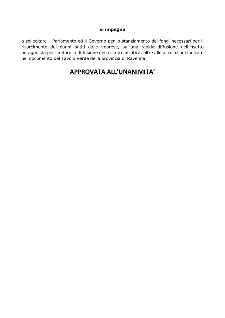 Di seguito il testo completo dell’Ordine del Giorno