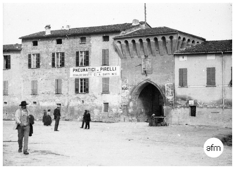Porta Montanara vista da Piazza Imperatore, come si chiamava il sobborgo sorto poco fuori la porta. La porta fu fatta saltare nel dicembre del 1944 dai tedeschi in ritirata. Foto: 1900-1910, fotografo Selmi. Donazione Fernanda Selmi