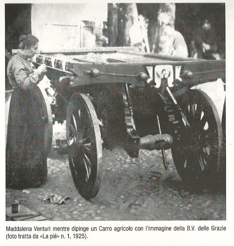 Maddalena Venturi, Granarolese (1860-1935) era definita come una donna “timida, schiva, quasi analfabeta”, che, tuttavia, “quando prendeva in mano i pentolini dei colori e maneggiava i pennelli si trasformava in una raffinatissima artista” che decorava i carri con fiori dai vivacissimi colori e con raffigurazioni del San Giorgio e della Madonna delle Grazie.
