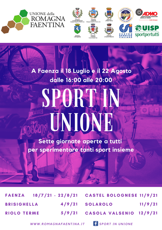 Nei comuni dell’Unione il primo appuntamento sarà a Brisighella, sabato 4 settembre al Centro Sportivo di via Canaletta. Si proseguirà a Riolo Terme, domenica 5 settembre al Parco Fluviale. Sabato 11 settembre, doppio appuntamento: a Castel Bolognese al centro sportivo di via Donati e a Solarolo al Parco Conti. La rassegna ‘Sport in Unione’ chiuderà con l’appuntamento a Casola Valsenio di domenica 12 settembre.