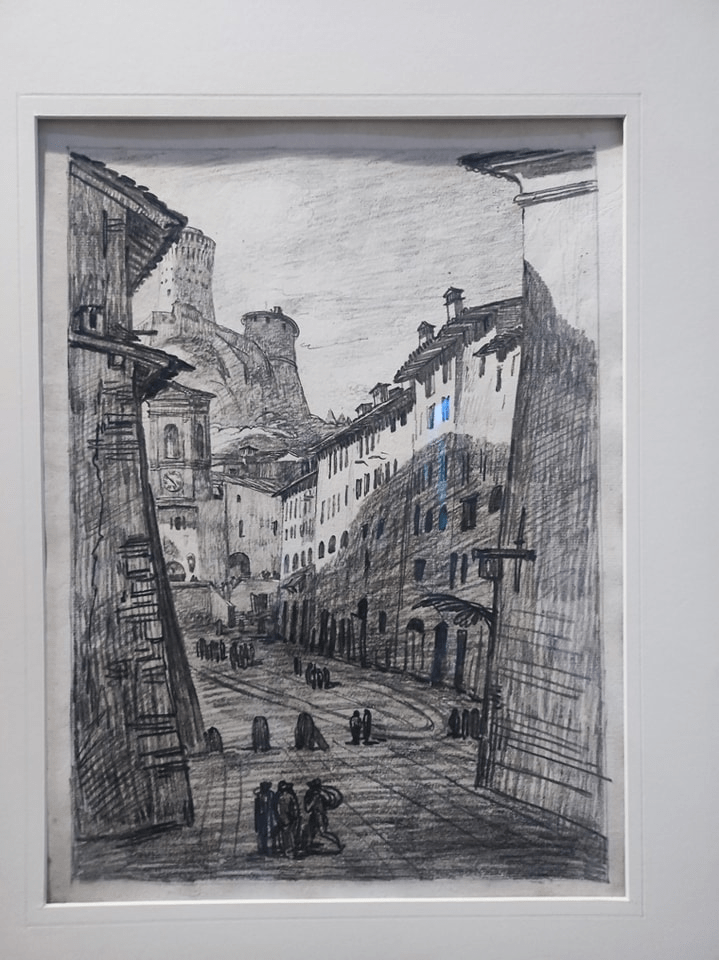 Nella sua città natale, che è un gioiellino, grazie anche all’attività dell’Archiviopittorgiani e alla collaborazione della nostra concittadina Marcella Vitali, hanno organizzato tre mostre diffuse con le opere del grande artista. Degna di nota, in particolare per noi faentini, è l’esposizione dell’album di disegni del viaggio da Marradi a Faenza.