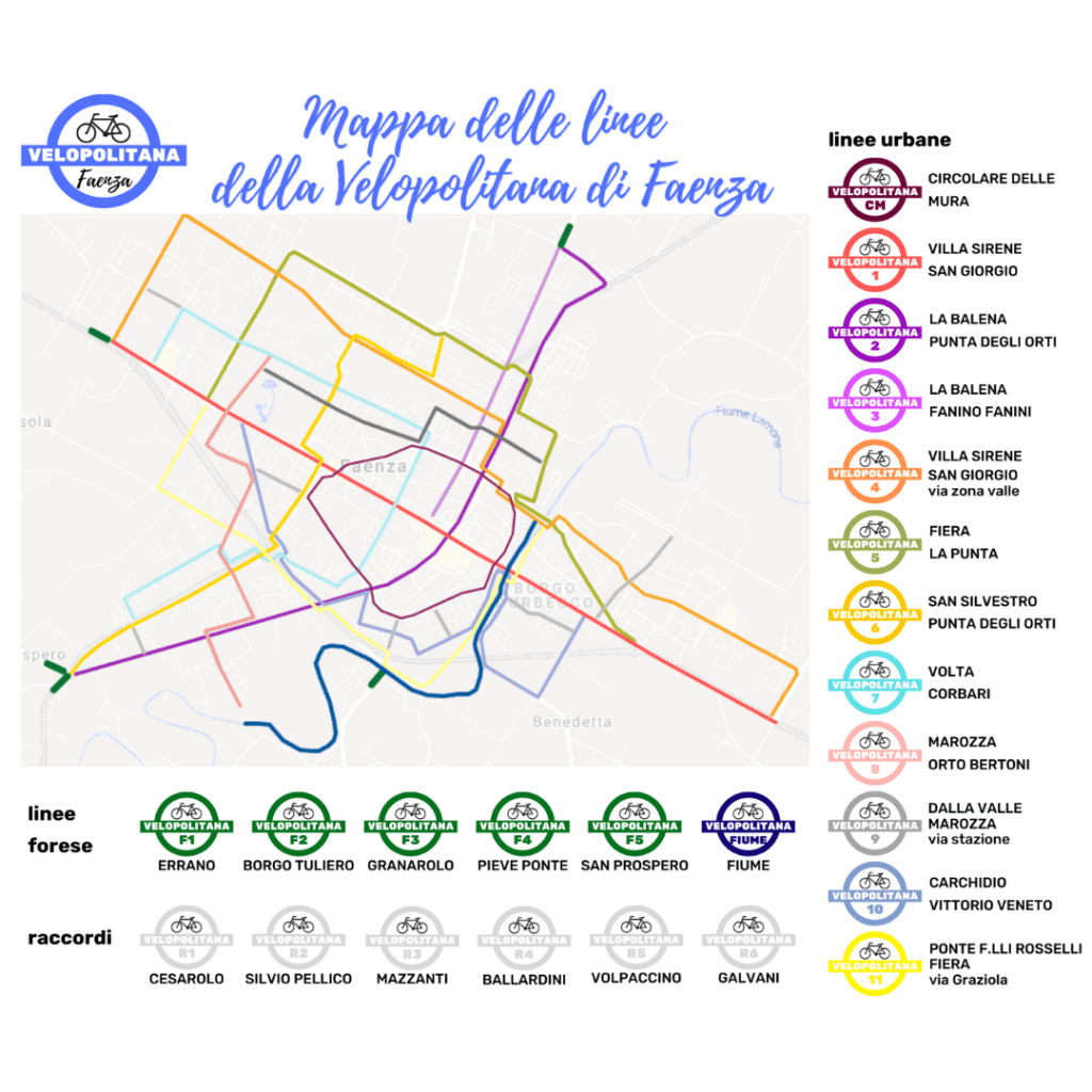 Una Velopolitana per Faenza, una mappa che, partendo dalle ciclabili, identifichi percorsi veloci, comodi, ecologici ed economici per spostarsi in bici da una parte all’altra della città.